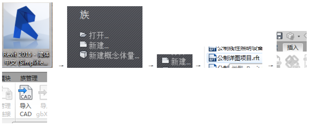 a) 新建族,樣板選擇“公制輪廓-豎梃”,在樓層平面視圖中導入步驟二中拼裝和對齊好的Revit詳圖
