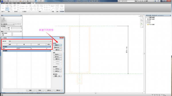 b) 在項目瀏覽器下找到“族-幕墻豎梃-矩形豎梃”右擊矩形豎梃,新建類型,在類型屬性中的構造-輪廓選項中選擇剛剛載入的豎梃輪廓。