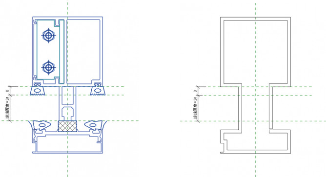 幕墻豎梃族分為兩個組成部分:“幕墻豎梃”和“公制輪廓-豎梃”,前者是基于后者輪廓的一個實體拉伸,兩者的關系類似于實體與草圖。輪廓族及門窗族 (公制門-幕墻,公制窗-幕墻而非公制門與公制窗)可以嵌套入CAD詳圖或Revit詳圖,這里比較推薦revit詳圖嵌套的方式進行詳圖的裝配。