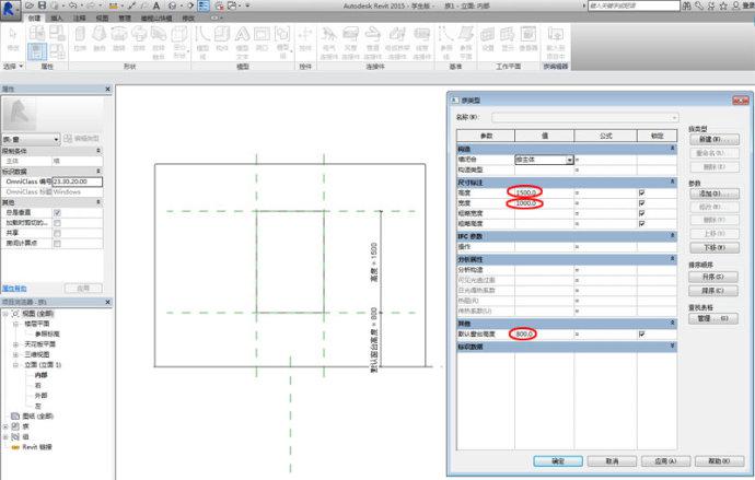 3.打開族類型對話框,我們會看到有三組數(shù)字,高度、寬度、默認窗臺高度,注意這三組數(shù)字在室內(nèi)設(shè)計上來講只是代表了墻體上窗洞的尺寸,室內(nèi)裝修就是 在這原點上開始,加上襯底、表面飾板、窗框、窗臺板等完成后,尺寸就完全不一樣了。這里的工作就是要把我們在室內(nèi)裝修中絕大部分在制作窗框中遇到的問題或 要想設(shè)計的窗框類型用數(shù)字在這族類型表中表達出來。