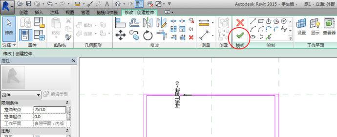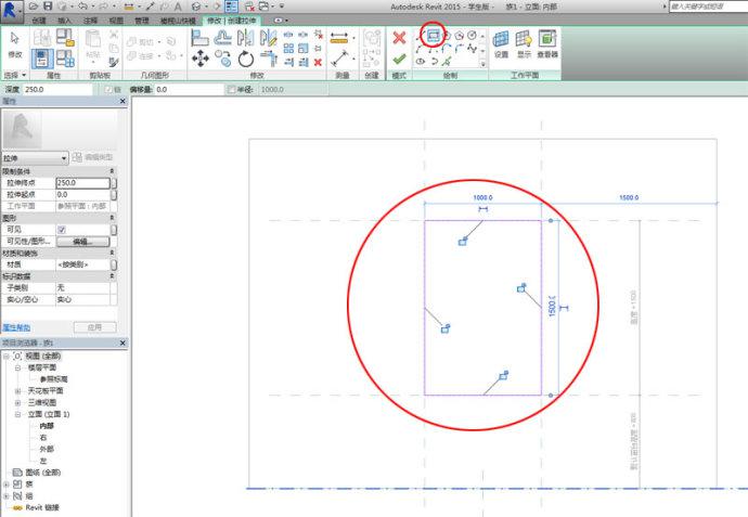 4. 首先我們先把襯底做出來,襯底從目前來講,我們會選擇木工板、密度板、多層板、刨花板等等,由于施工項目中,窗洞的尺寸和位置形狀等和我們設(shè)計的要求會有 偏差,如墻有厚薄之別,窗扇在墻內(nèi)外側(cè)的什么位置,窗扇左右有沒有偏差校正等等。所以要求襯板上下左右的厚度和深度都能進行調(diào)整。在revit中我們用 “創(chuàng)建"中的“拉伸”命令。用“矩形”工具在參照平面上畫一個矩形,鎖住關(guān)聯(lián)。