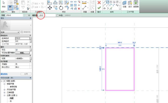 5. 在偏移量中填寫“-20”拉出襯板的厚度。