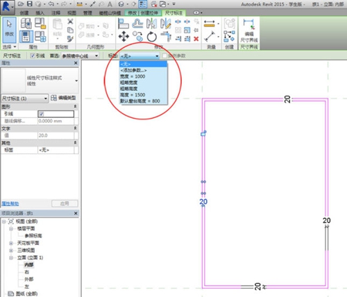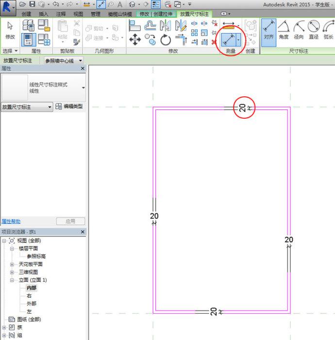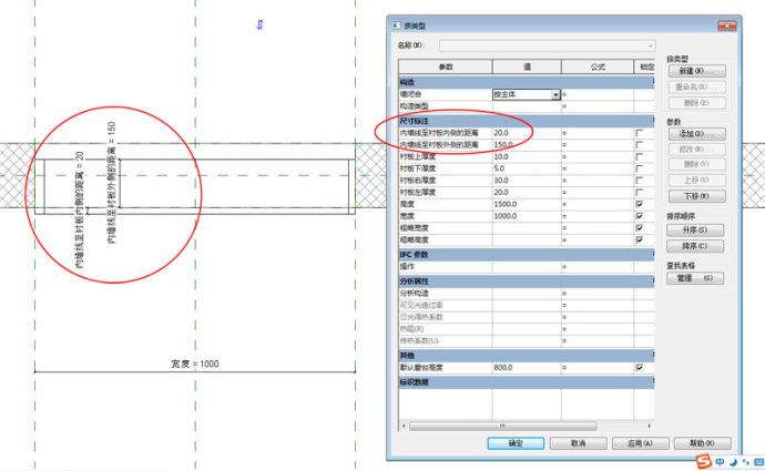 10.這里要設(shè)定二個參數(shù),一個是伸進墻體尺寸,為的應(yīng)付窗體位置在墻中變化。另外一個拋出墻體尺寸,為的是應(yīng)付有時設(shè)計上要求對涂料、墻紙、飾面材料的收口。我這里把內(nèi)墻線作為作為尺寸基線來添加尺寸參數(shù),然后點擊一下族類型測試一下變化。