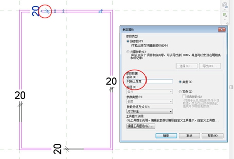 7. 點擊“尺寸標注”,然后點擊菜單欄中的“標簽”對話框,選擇添加參數(shù),在對換框中填入“襯板上厚度”,同理分別填入“襯板下厚度”、“襯板左厚度”、“襯板右厚度”,這樣襯板每一條邊的厚度設(shè)定完畢。測試一下分別給每一條變填入?yún)?shù)后的變化。