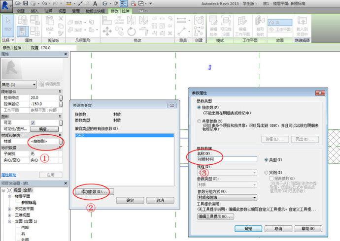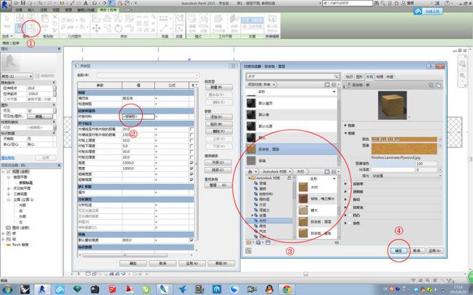 11. 在“屬性”中添加材料屬性,然后進入“族類型”添加材料,按“確定”。這樣襯板就完成了。