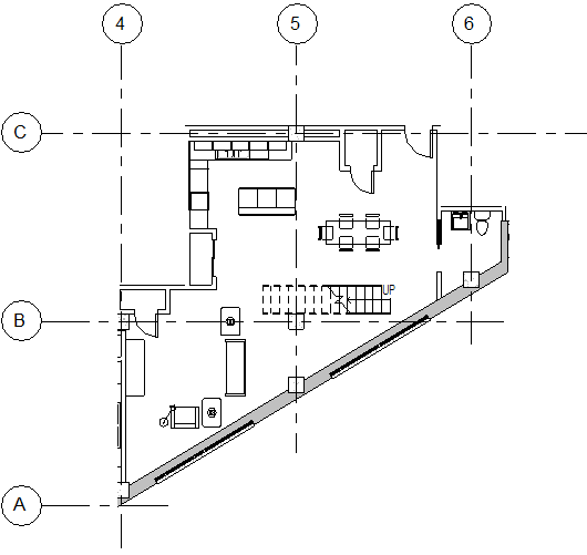 在以下樓層平面中,非矩形裁剪區域隱藏了房間單元右上角和左上角的不相關的模型幾何圖形。