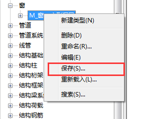 1、項目瀏覽器找到對應的族,右鍵選保存