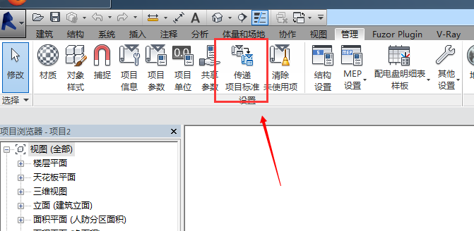 3、你也可以直接利用“傳遞項目標準”將別的項目的族一次性拷貝到新項目