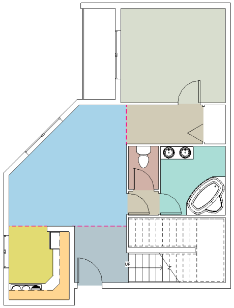 如果創(chuàng)建了一個(gè)以墻作為邊界的房間,則默認(rèn)情況下,房間面積是基于墻的內(nèi)表面計(jì)算得出的。 如果要在這些墻上添加洞口,并且仍然保持單獨(dú)的房間面積計(jì)算,則必須繪制通過(guò)該洞口的房間分隔線(xiàn),以保持最初計(jì)算得出的房間面積。
