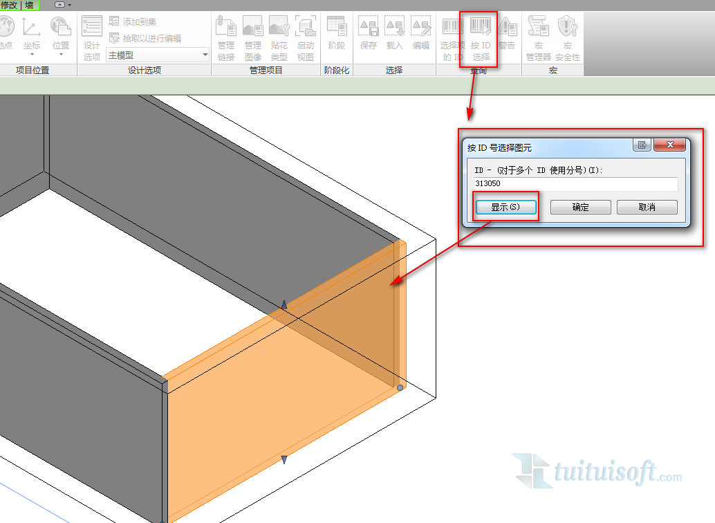 選擇圖元,然后選擇管理選項(xiàng)卡的“選擇項(xiàng)的ID”