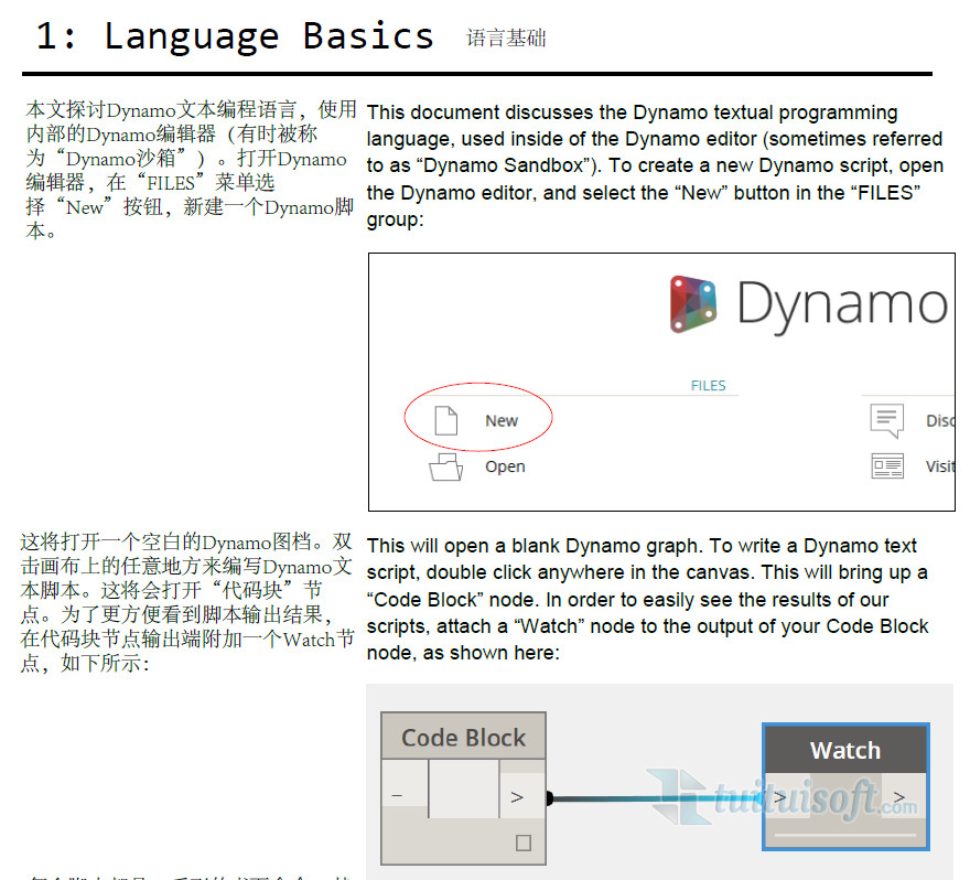 本手冊為網友翻譯,Dynamo語言入門,基于官網發布的PDF翻譯