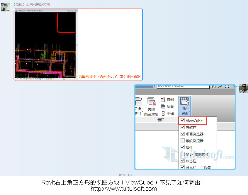 Revit右上角正方形的視圖方塊(ViewCube)不見了如何調出!