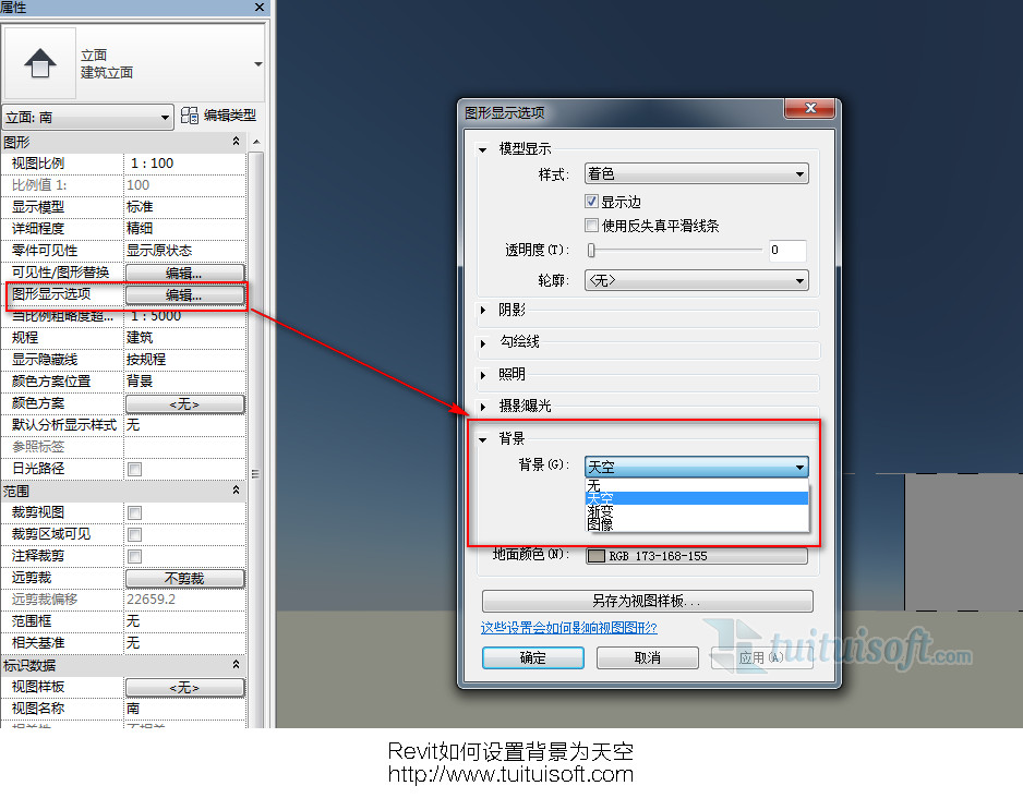 Revit如何設置背景為天空?