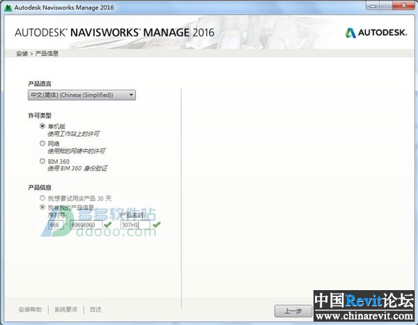 5、選擇許可類型為單機版,輸入產(chǎn)品序列號【666-69696969】和產(chǎn)品密鑰【507H1】;