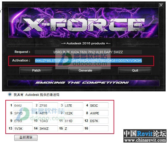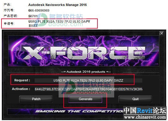 12、再將申請?zhí)枴綰5RG PL7E XU2A T82U 7PJ2 UL93 DAPY SWZZ】復(fù)制到request框中,再點擊generate得到激活碼;