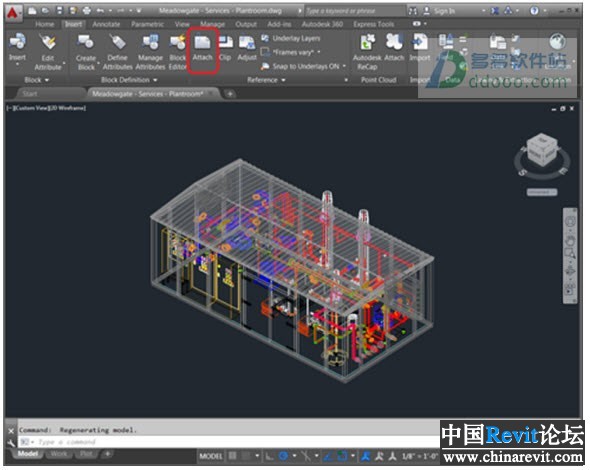 此功能的第一批客戶便是 AutoCAD 團隊,您可以在 AutoCAD Maestro Beta 1 中試用此新功能。在 AutoCAD 中使用 ATTACH 命令,您可以瀏覽到協(xié)調(diào)模型(NWD 或 NWC 格式)并進行選擇,然后在 AutoCAD 中查看 - 類似于任何其他參照文件。