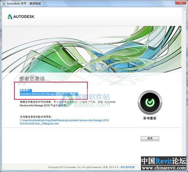 14、好了,祝賀您!autodesk navisworks manage 2016已成功激活,至此用戶可以無限制免費使用。