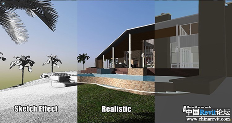 在Fuzor的發展過程中Fuzor開發團隊已經收到了大量的反饋意見的許多功能。把一些這方面的反饋Fuzor已創建了四個渲染模式,素描效果,逼真的,一致的,和抽象。