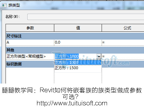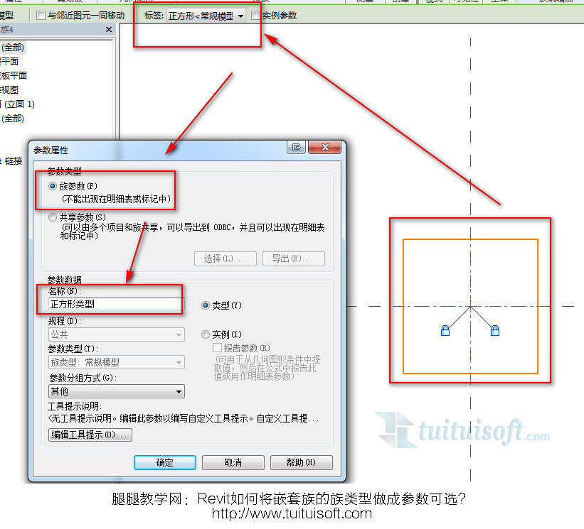 2、載入族后,選擇被載入的嵌套族,選擇頂部標簽,添加標簽參數