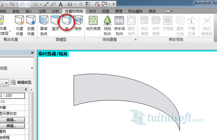 創建對應的體量模型,然后通過體量里的面墻