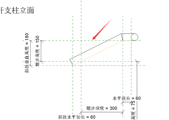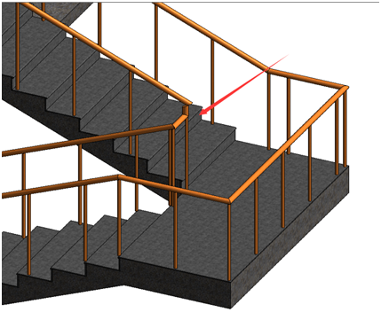 編輯欄桿,將終點支柱的族替換為樓梯轉角族,并對位置進行修改。