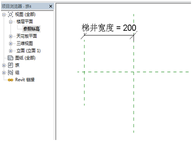 1、首先需要新建一個公制欄桿-支柱族。在視圖中轉到參照標高,做一條參照平面,并添加一個梯井寬度參數。