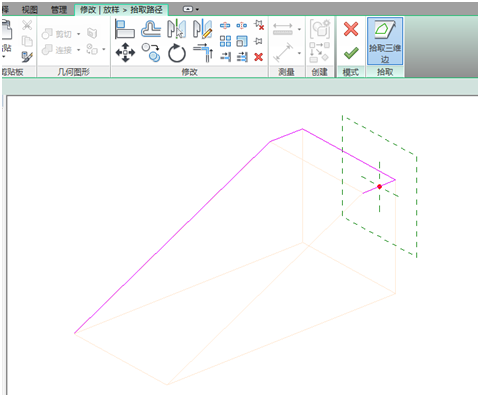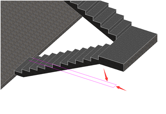 5、在樓梯轉角族中切換到三維視圖中,使用放樣命令,并采用拾取路徑的命令,路徑如下圖: