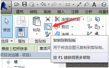 選中一層內側和外側的欄桿,在修改選項卡中點擊復制,在點擊粘貼,選擇與選定的標高對齊,將欄桿復制到需要的樓層上。