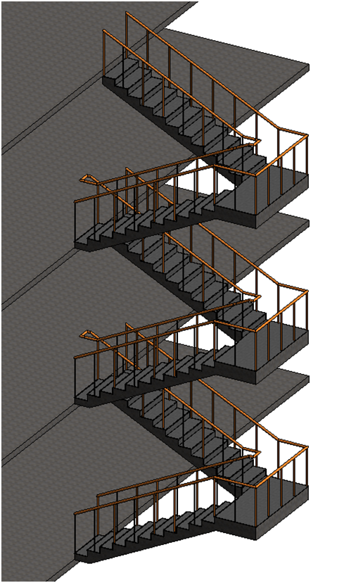 如果頂層的欄桿不需要進行轉角處理,只需要選中欄桿,將欄桿替換成外側的欄桿類型就可以了。最終完成效果圖如下: