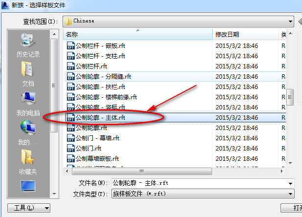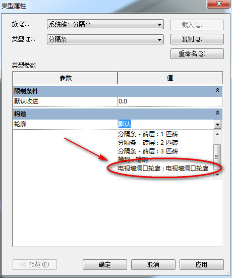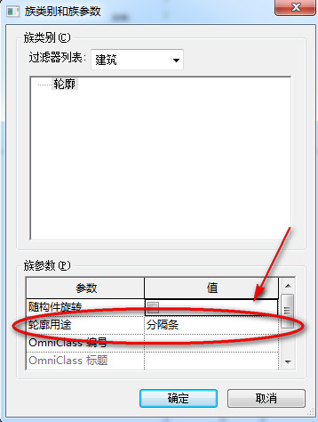 2、將族進行保存并打開族類別,在輪廓用途中選擇分隔條