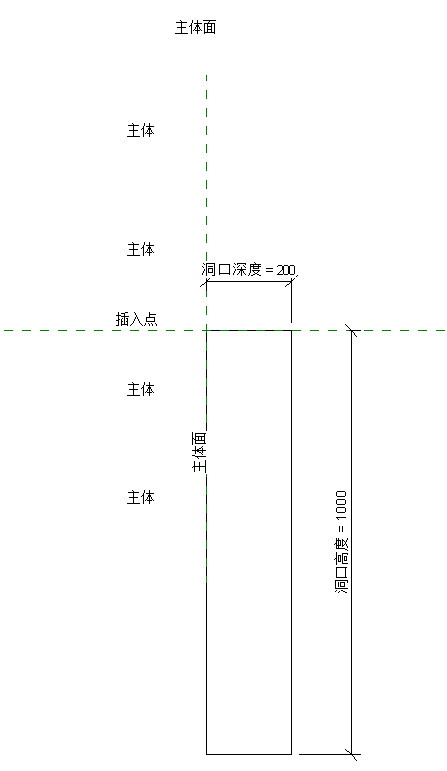 2、設置墻面為參照平面,使用空心拉伸命令在墻面上繪制洞口形狀