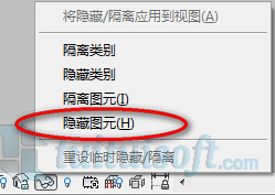 如何臨時隱藏圖元呢?選擇需要隱藏的圖元,點擊視圖控制欄中的眼鏡圖標,選擇隱藏圖元(快捷鍵hh
