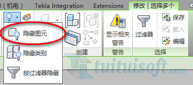 那么如何永久隱藏圖元呢?選擇圖元后在修改選項卡下點擊燈泡圖標,選擇隱藏圖元
