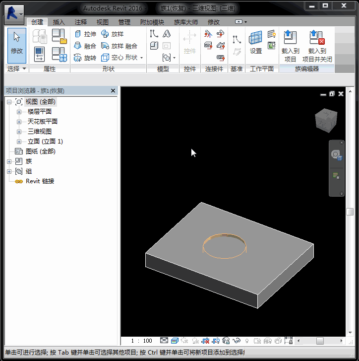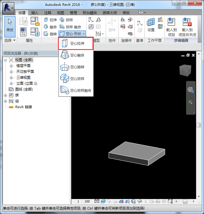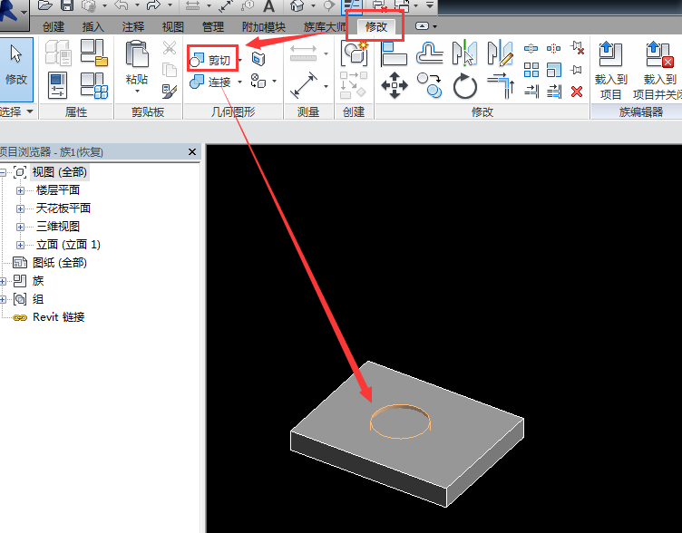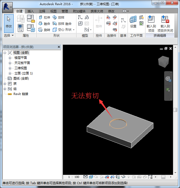 2. 空心拉伸族載入項目中之后無法剪切項目主體