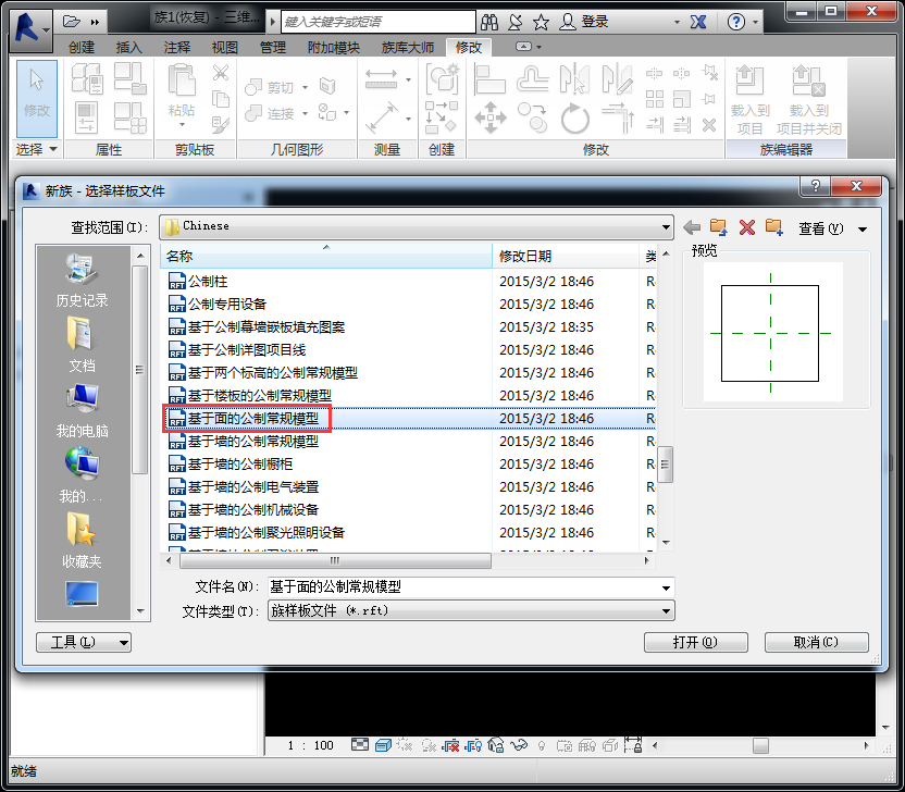 如果想制作一個能夠剪切項目中主體的空心剪切族只要在新建族時選擇【基于面的公制常規模型】就可以了