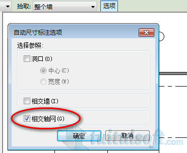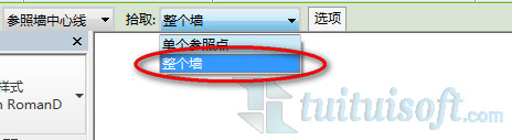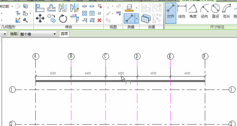 接著點(diǎn)擊尺寸標(biāo)注(快捷鍵di),在功能區(qū)下方選擇拾取整個墻
