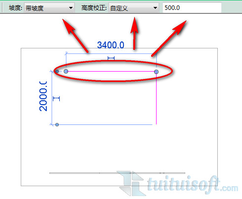 在路徑編輯狀態下先繪制好路徑,選擇某段路徑,在選項欄中會出現“坡度”和“高度校正”選項,分別選擇“帶坡度”和“自定義”,并輸入所需的數值,該段欄桿扶手就會有坡度了!
