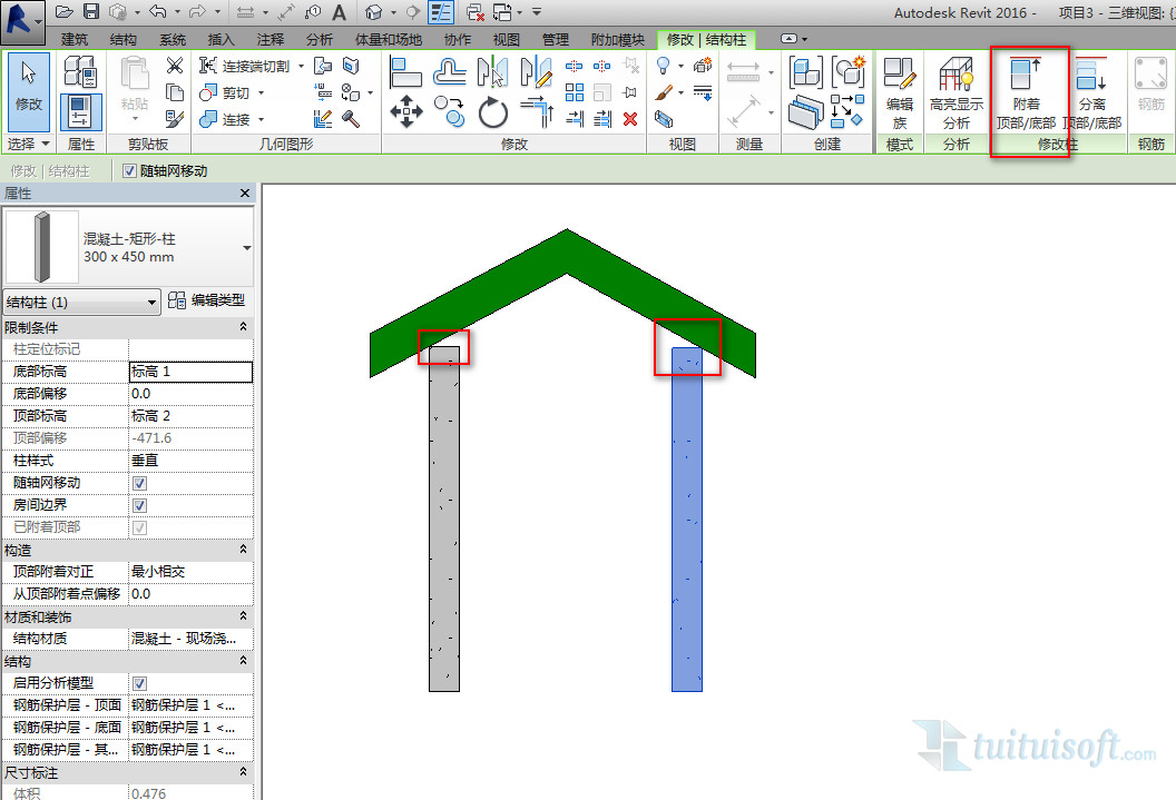 在建模過程中呢,COCO畫完圖發現 咦,柱子怎么不能自動連接屋頂呢?