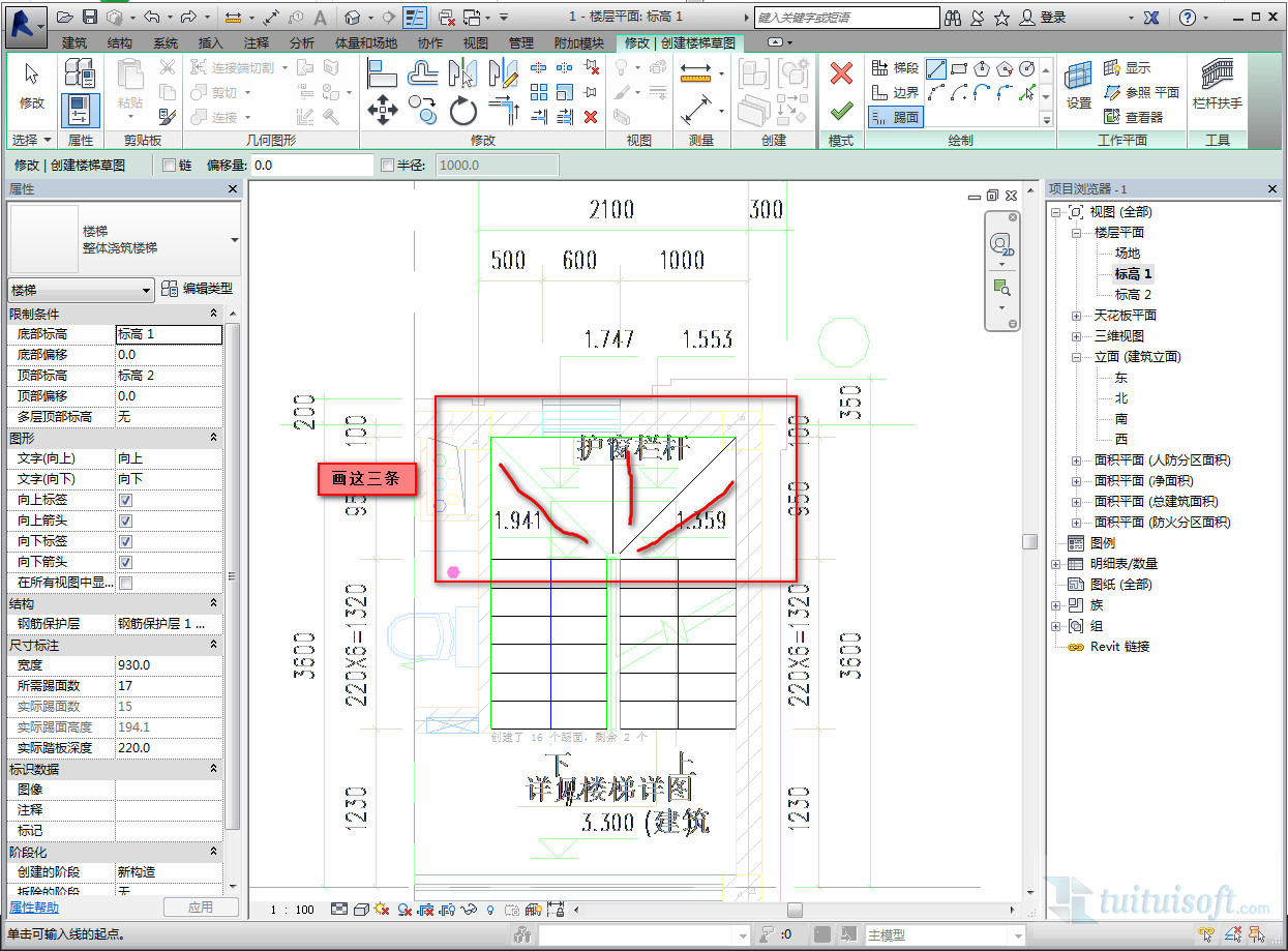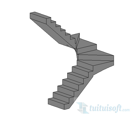 我們選擇梯段按CAD圖繪制樓梯(我們先忽略他們平臺部分三角形的樓梯)畫出來大概是這樣