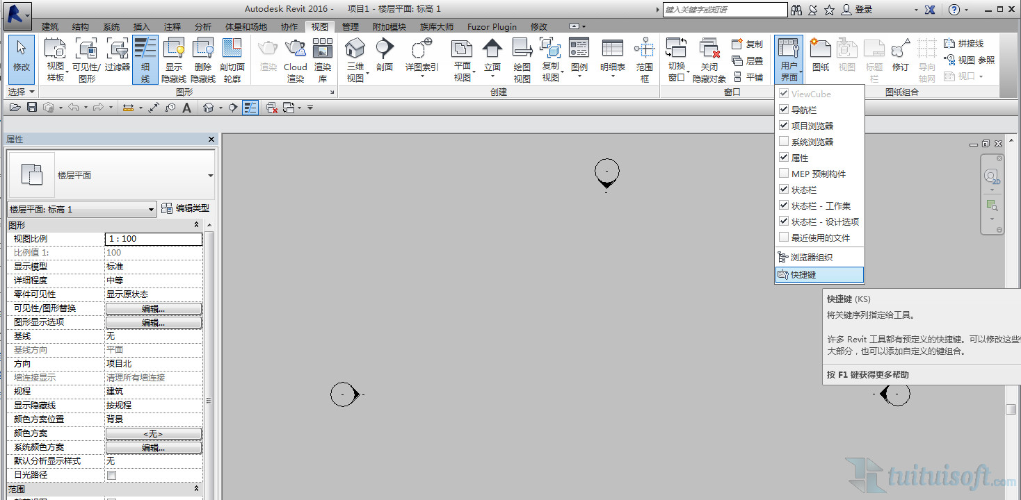 我們可以在視圖選項卡窗口面板的用戶界面中選擇快捷鍵選項,進而根據我們自身的需求設置快捷鍵。
