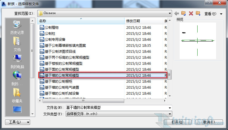 首先,我們先新建一個(gè)基于墻的族