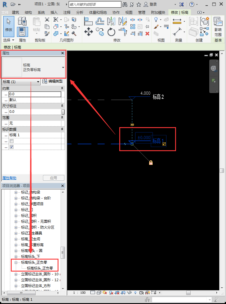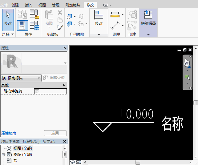 首先,選中我們的標高,按照屬性欄顯示的標高類型,在項目瀏覽器中找到對應的族,右鍵進入編輯模式