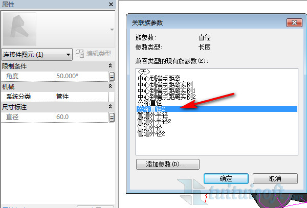 3、這時候我們選擇支管上的管道連接件,將它的尺寸與“公稱直徑2”進行關聯