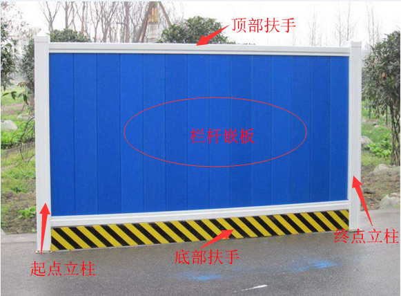 首先將圍擋分為如上圖所示“頂部扶手”、“底部扶手”、“起點立柱”、“終點立柱”“欄桿嵌板”五部分。