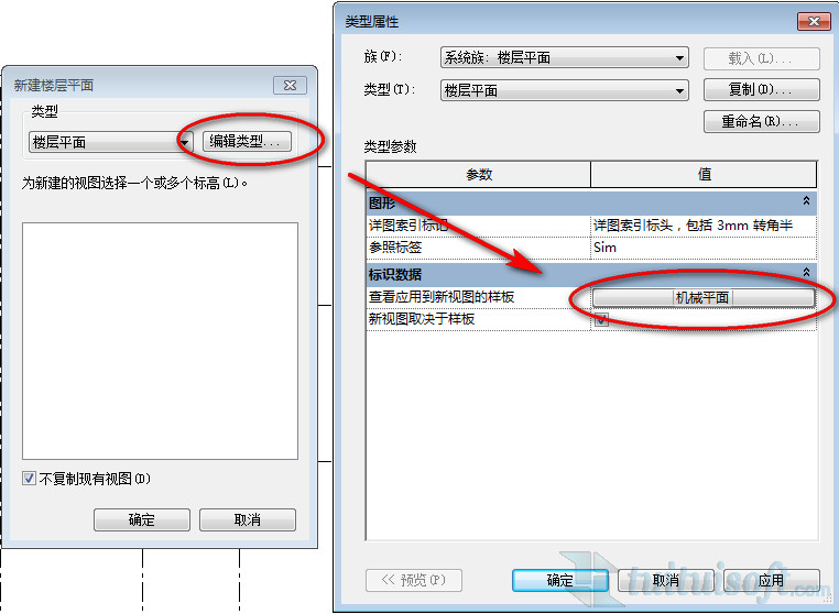 默認應用的視圖樣板為無,可以選擇其他你想要創建樓層平面的視圖樣板