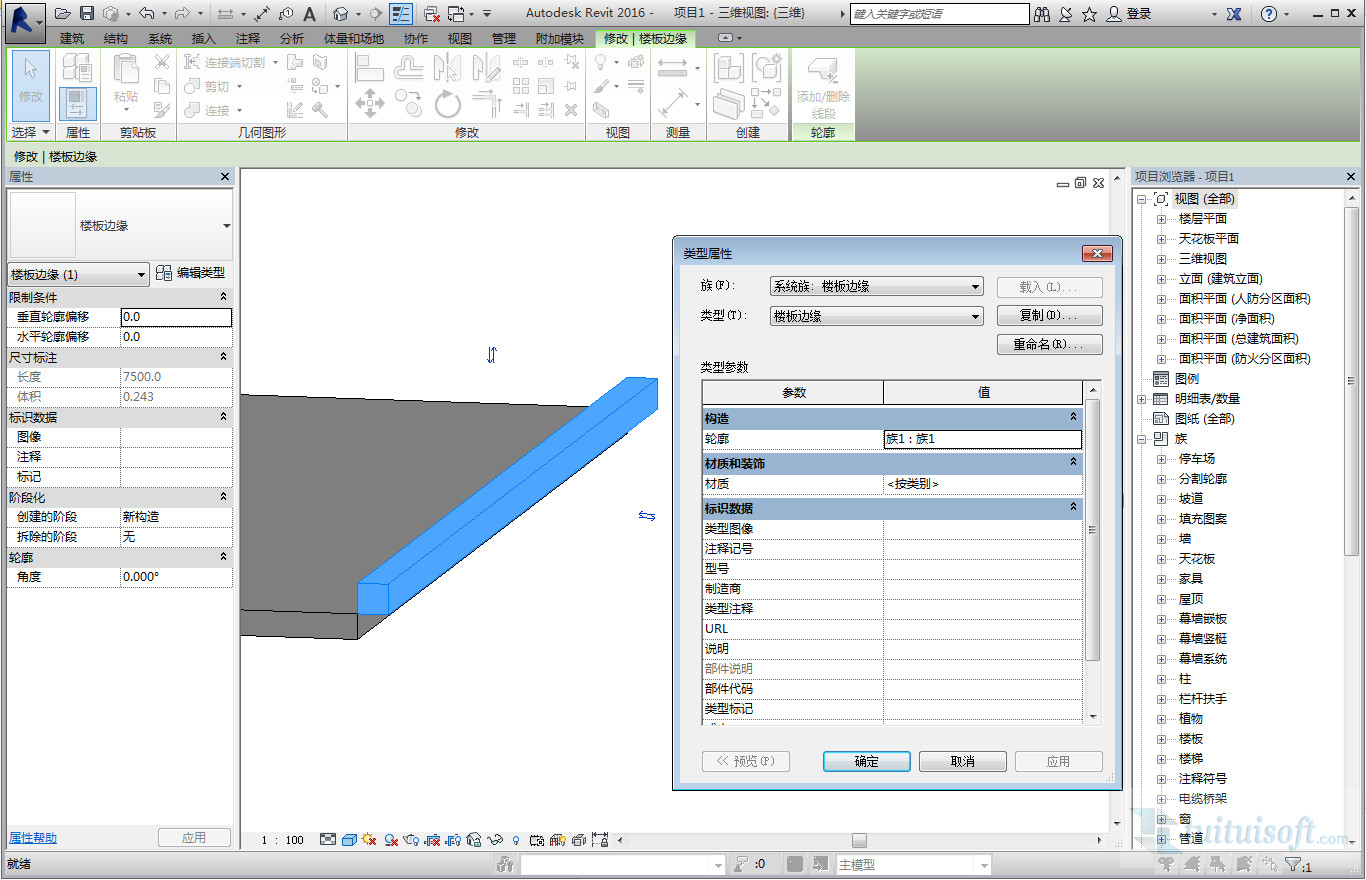 如果想要修改參數,應該在項目瀏覽器 族的那一欄中進行修改