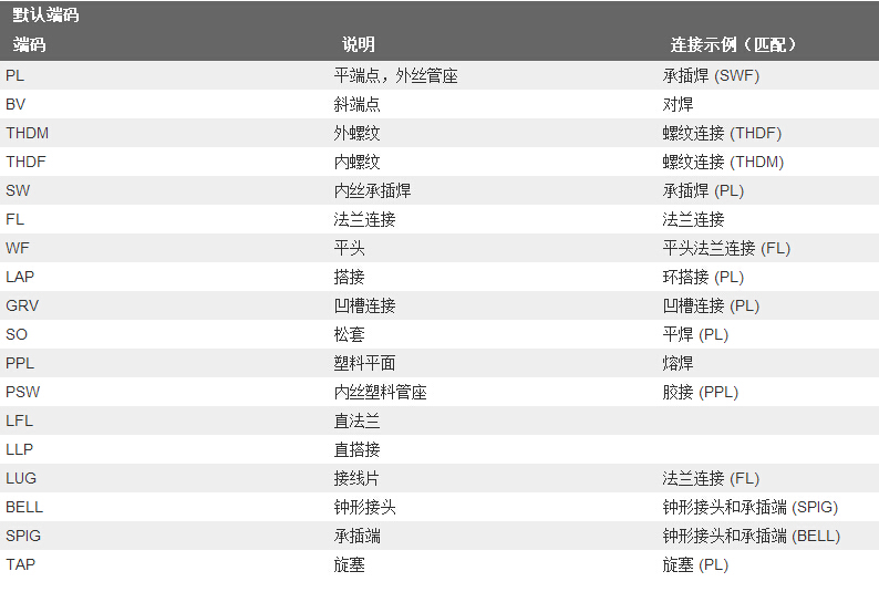 3、通常情況下,不能直接處理端碼,因為它們是設備管嘴或管道等級庫中使用的零件的只讀特性。