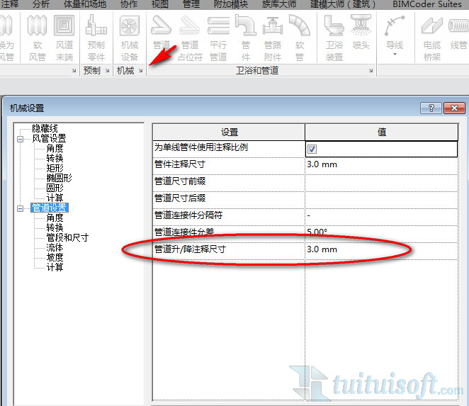 在管道設置里可以看到“管道升/降注釋尺寸”一欄