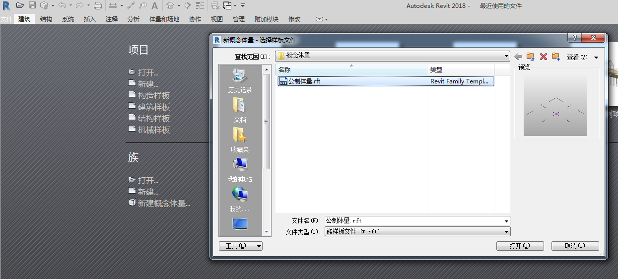 打開revit軟件,我們可以在軟件的開始頁面找到新建概念體量