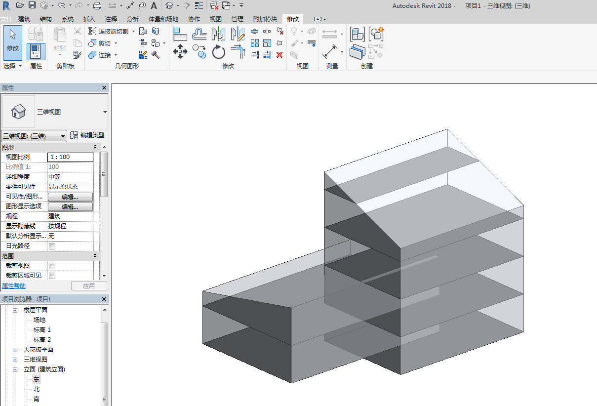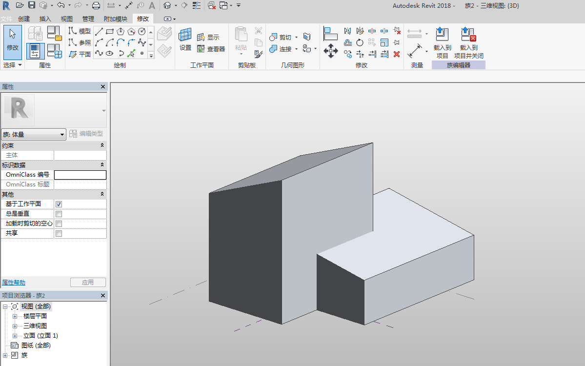 作為示例,我們創建了如下一個建筑體量,體量完成后將其導入到新的項目文件中